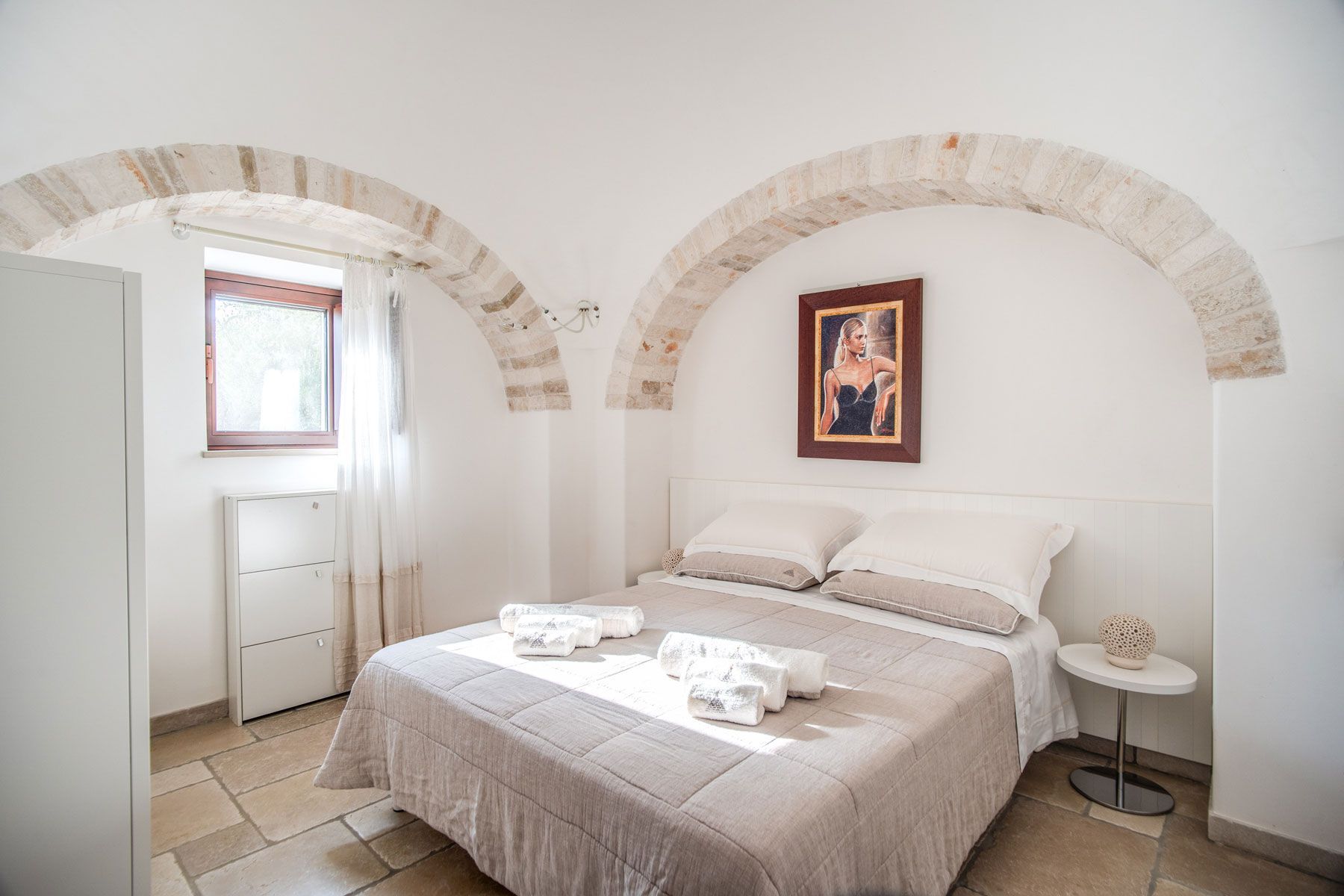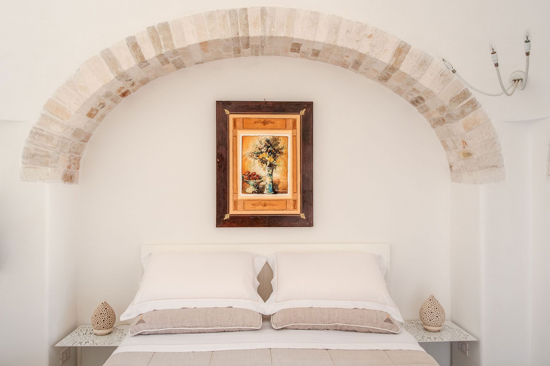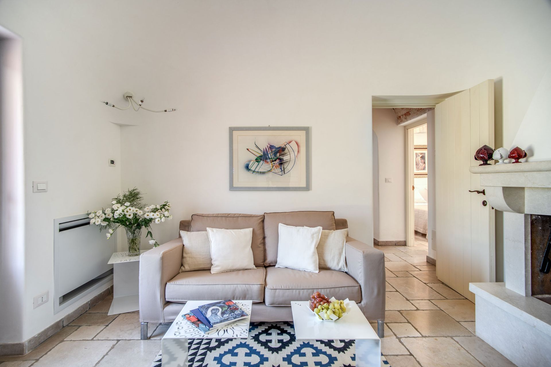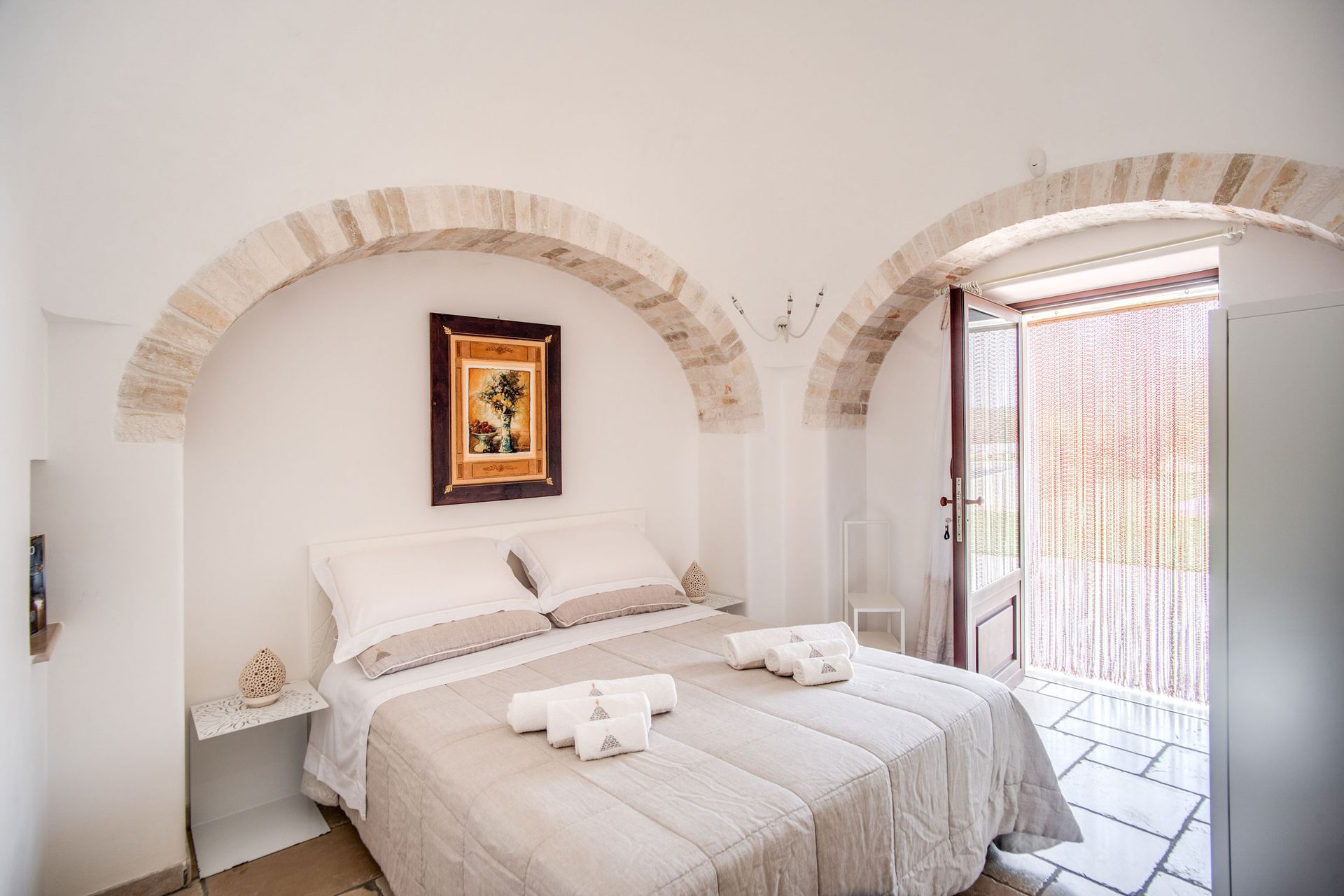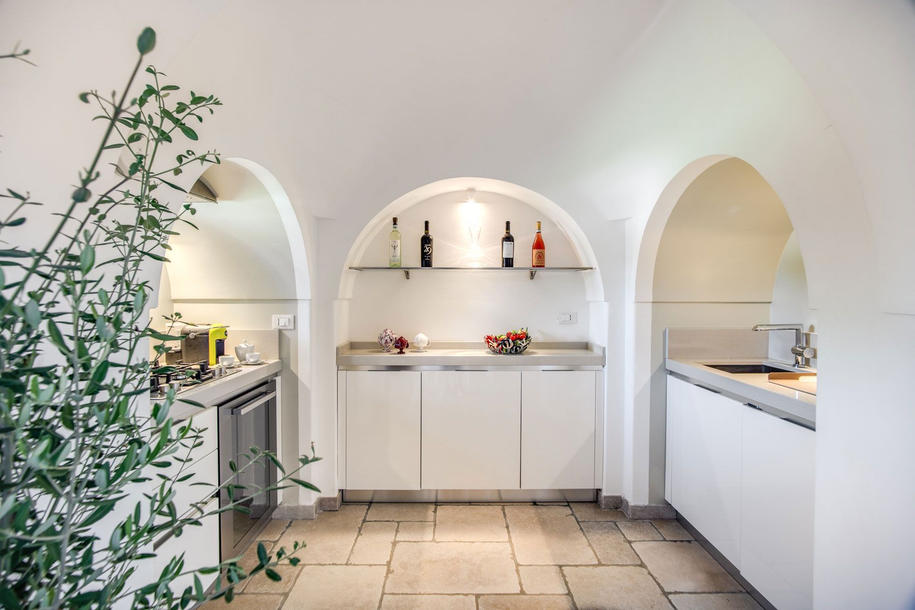 Le due corti che si trovano sul lato destro e sinistro del trullo sono arredate con divani, tavoli e ombrelloni. La proprietà, completamente recintata, dispone di un parcheggio privato e di un sistema di allarme.