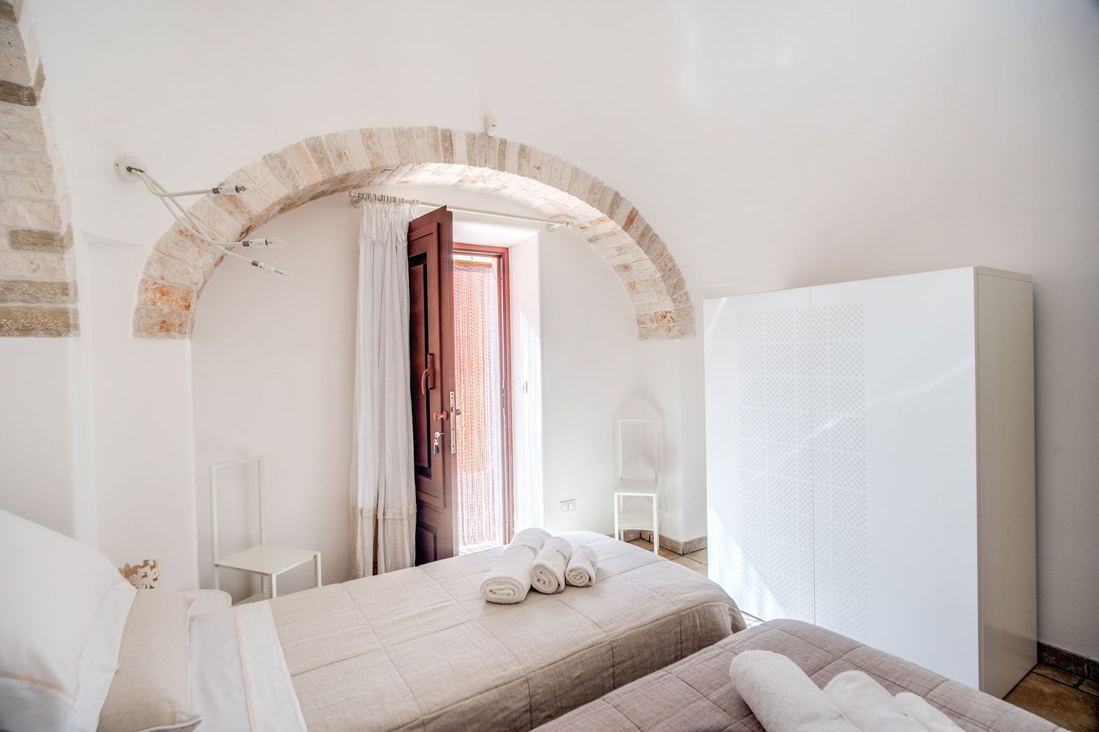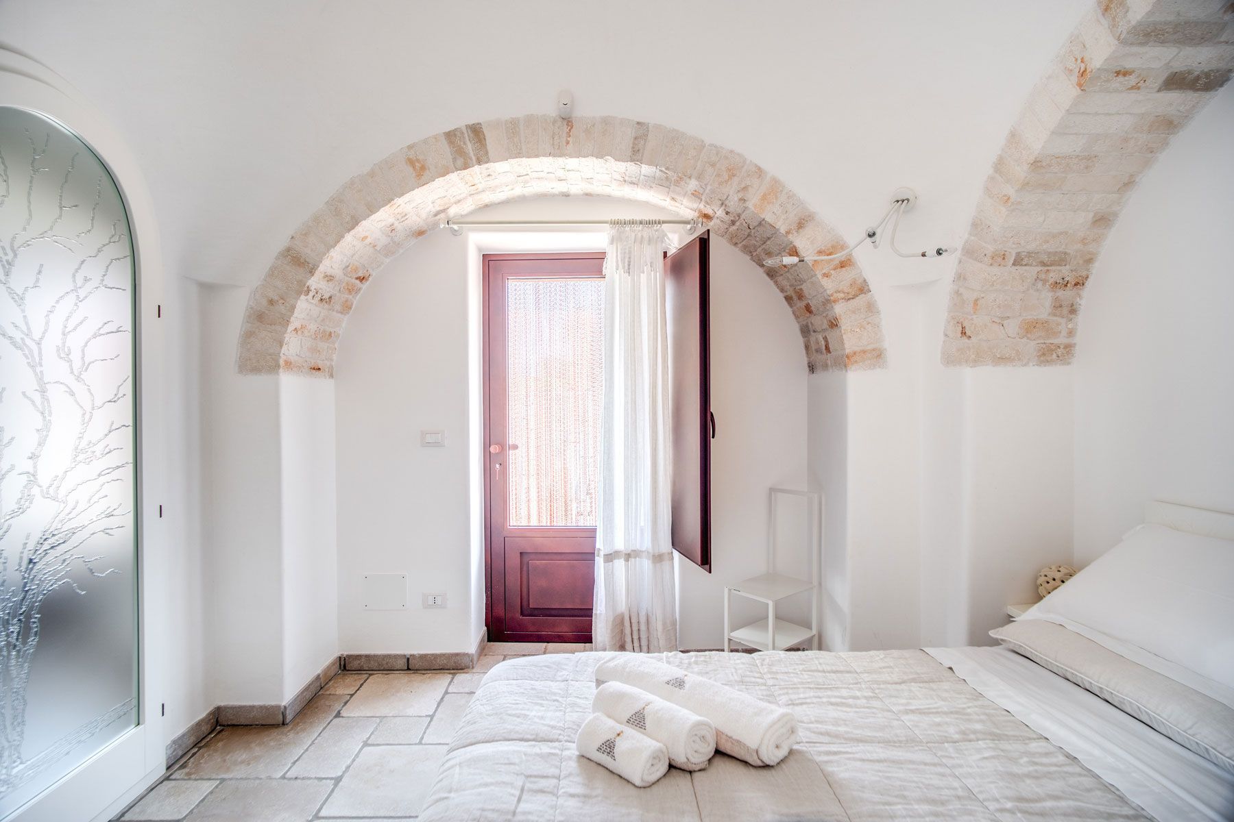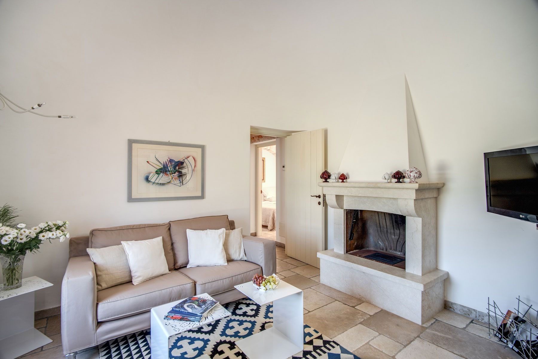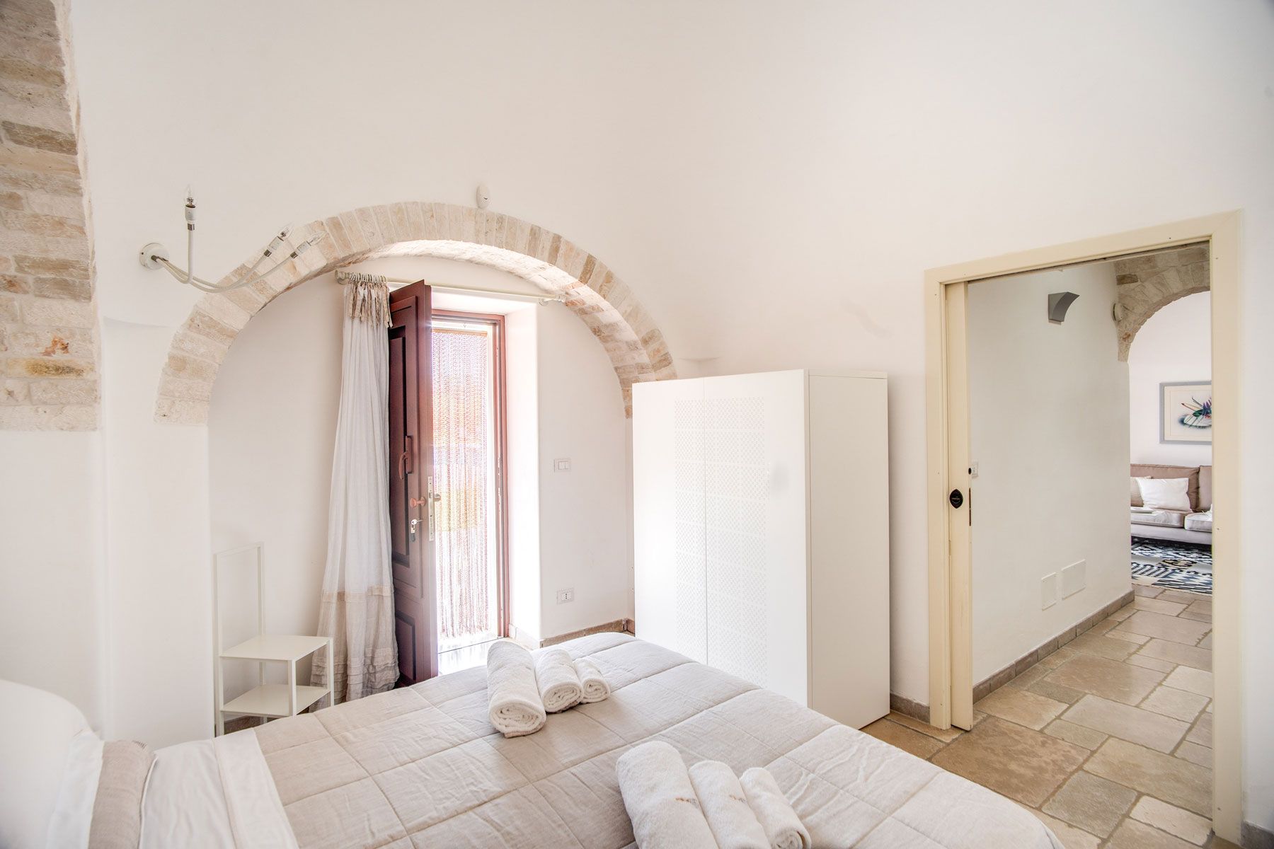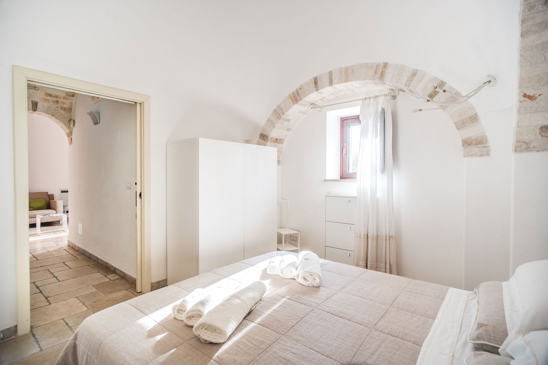 Le due corti che si trovano sul lato destro e sinistro del trullo sono arredate con divani, tavoli e ombrelloni. La proprietà, completamente recintata, dispone di un parcheggio privato e di un sistema di allarme.