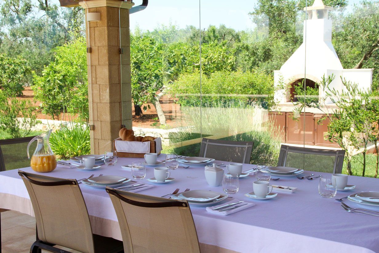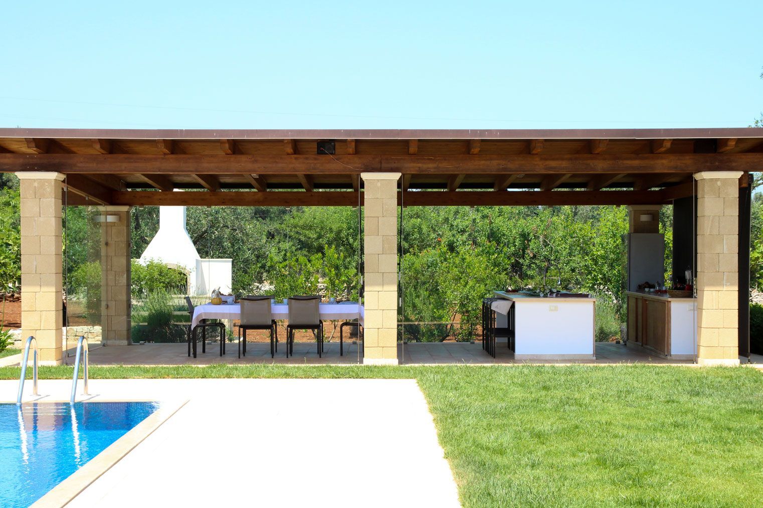 A pochi metri dalla piscina si trova un grande gazebo con una zona cucina attrezzata con forno, piano a induzione, lavastoviglie, macchina del ghiaccio, refrigeratore per bevande, bar, tavoli e sedie. Uno spazio perfetto per preparare e gustare colazione, pranzo e cena, senza mai perdere il contatto con la natura. Per chi desidera un relax completo, è disponibile, su richiesta, uno chef privato pronto a soddisfare ogni gusto.